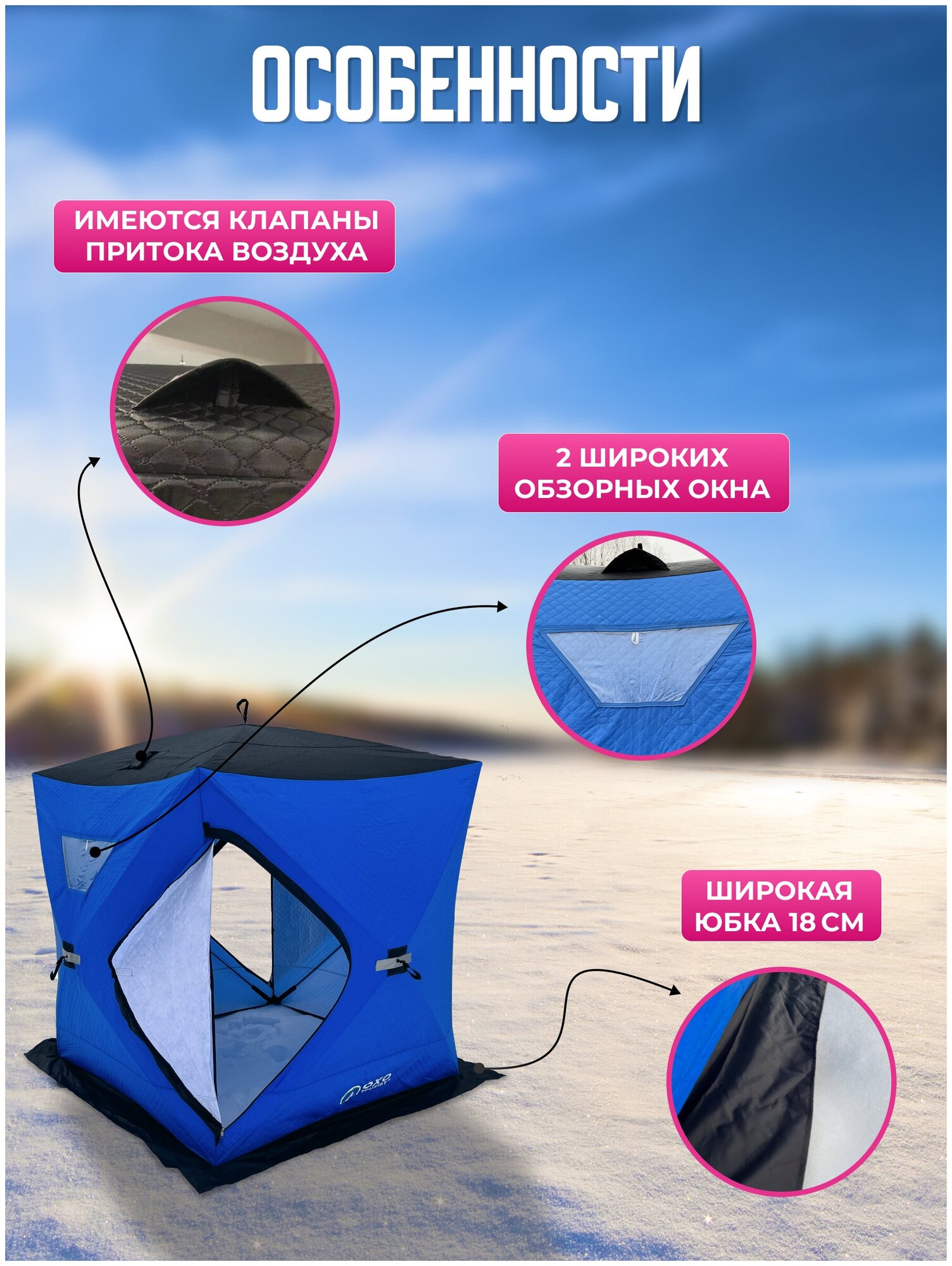 Трехслойная зимняя палатка 3-4 местная BX010, туристический шатер OXO tourist для рыбалки, охоты интересное: