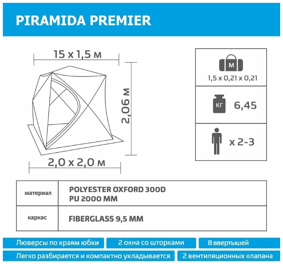 Палатка зимняя PIRAMIDA 2,0х2,0 yellow/gray (PR-ISP-200YG) PREMIER интересное: