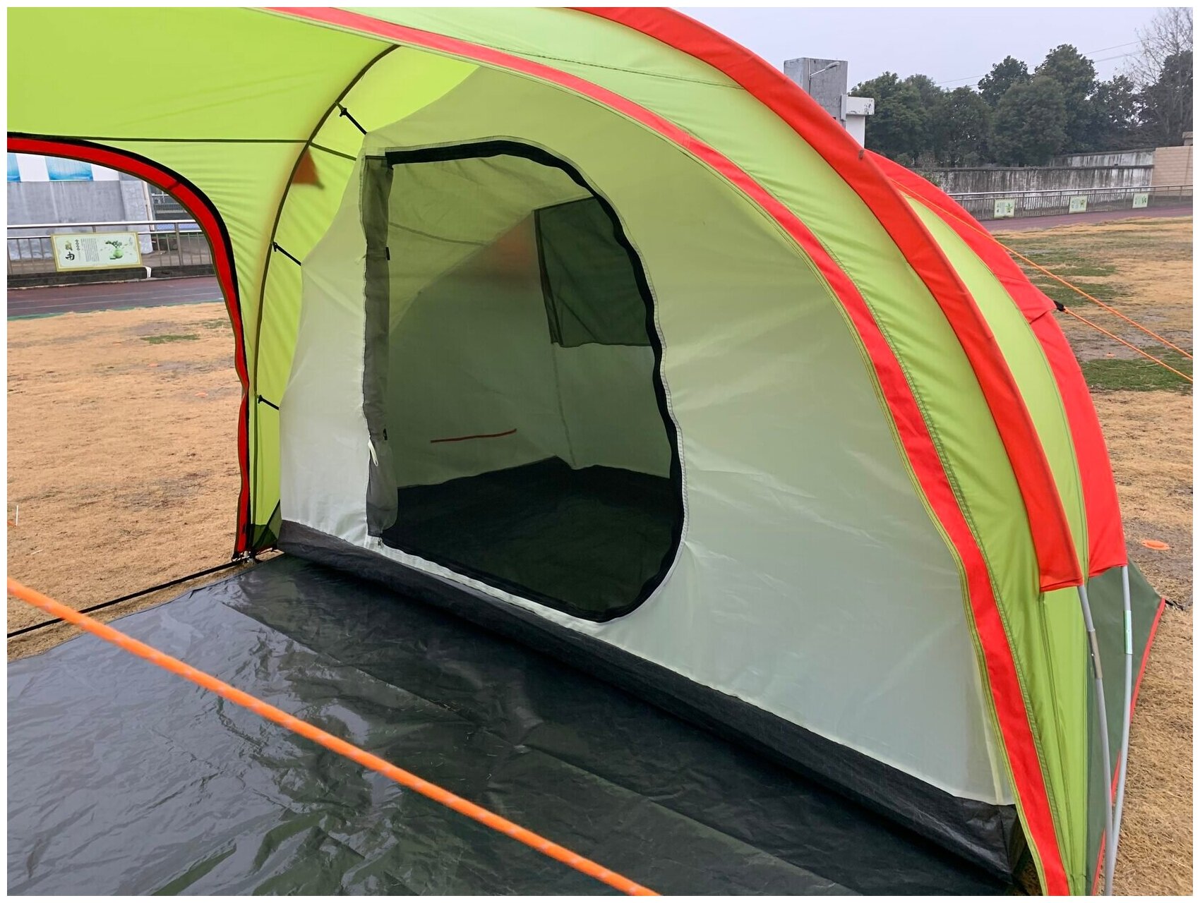 | Минусы: | Нет сеточек на входах в тамбур. Недопроклеены швы молний на входах, треть до молнии да, сама молния - нет, не понятно, это конструктивно так, или скорее всего брак/недоклеили на производстве. Из-за этого промокает прострочка молнии над клапаном, который её защищает от влаги и идёт протечка. За дождливую ночь с полстакана натекает на пол тамбура. |