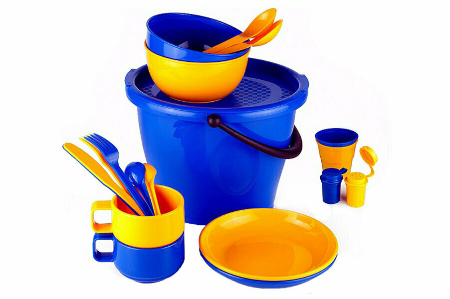 | Комплектация | 1 шт. - ведёрко 5,0л с герметичной крышкой; 2 шт. - миска 1,0л для супа/салата; 2 шт. - тарелка 180мм; 2 шт. - чашка 0,28л; 2 шт. - стакан 0,1л с мерными делениями; 2 шт. - вилка; 2 шт. - ложка столовая; 2 шт. - нож; 2 шт. - ложка чайная; 2 шт. - солонка/перечница. |