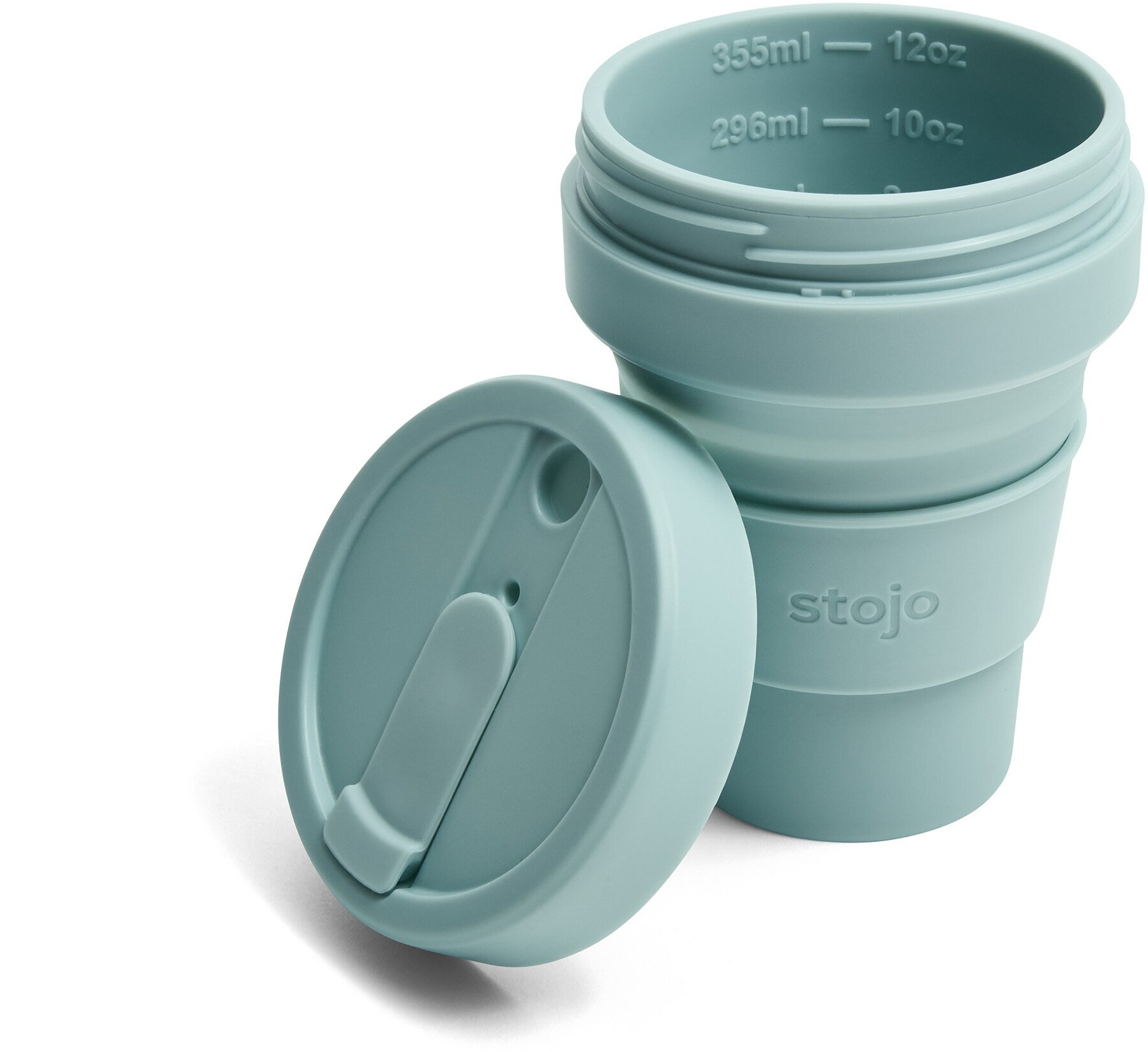Многоразовый складной стакан STOJO с крышкой для кофе с собой из пищевого силикона 355 мл, цвет Eucalyptus