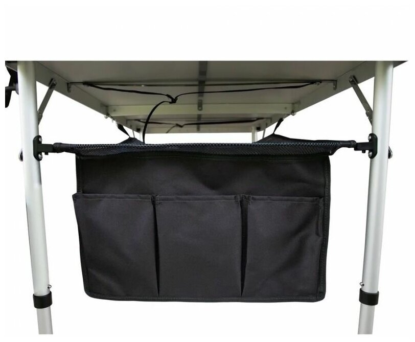 | Плюсы: | Лёгкий, компактный. Есть чехол для переноски и хранения. Сетка под столешницей для хранения, кармашки сбоку. Очень удобные. 2 дня простоял под дождём и ничего не разбухло. |
