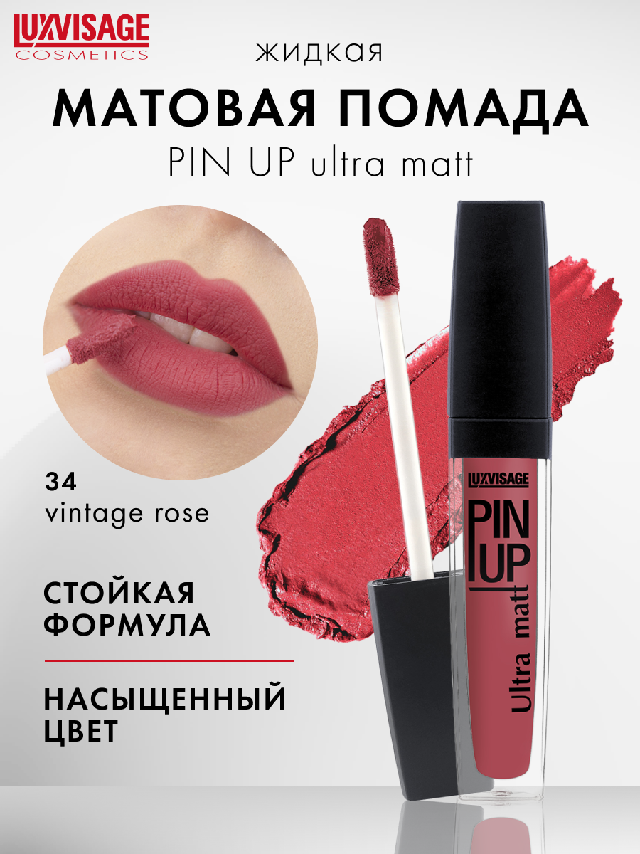 LUXVISAGE Блеск для губ PIN UP ULTRA MATT матовый, тон 34 VINTAGE ROSE,5г