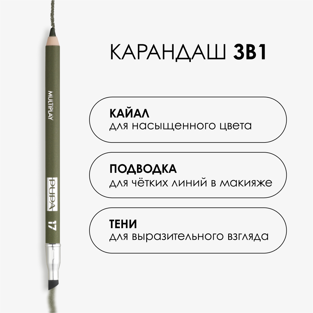 Pupa Карандаш для глаз тройного действия: подводка для глаз, тени и кайал Multiplay тон 17, Elm Green (зеленый вяз) 1,2гр