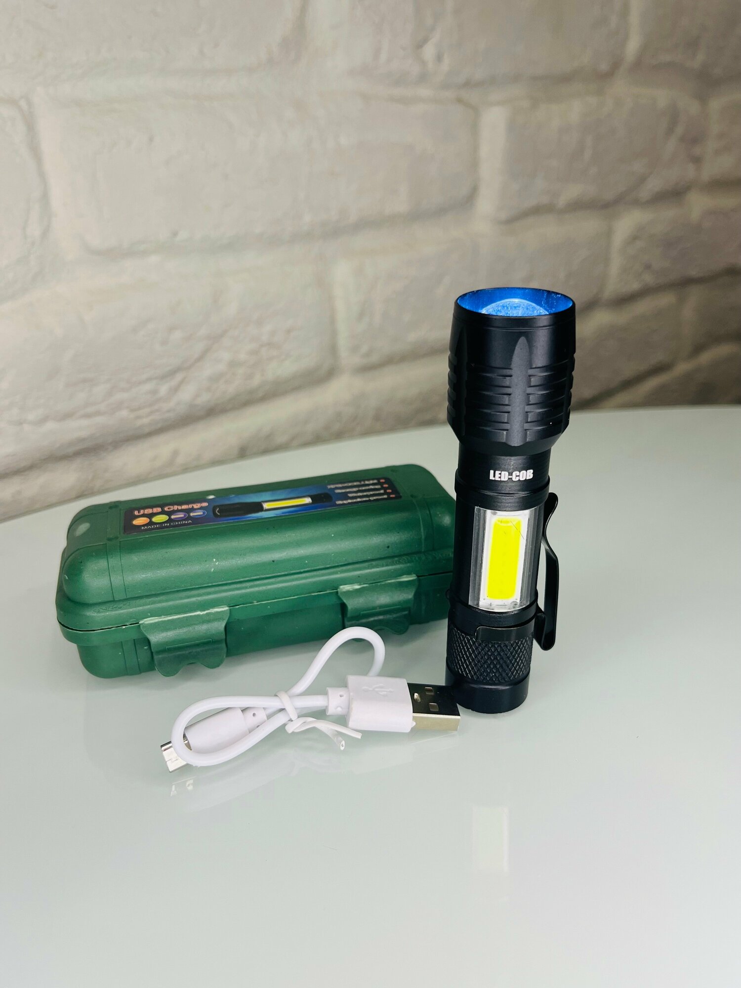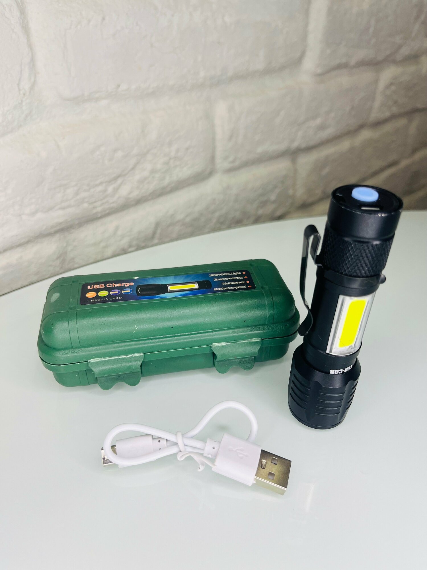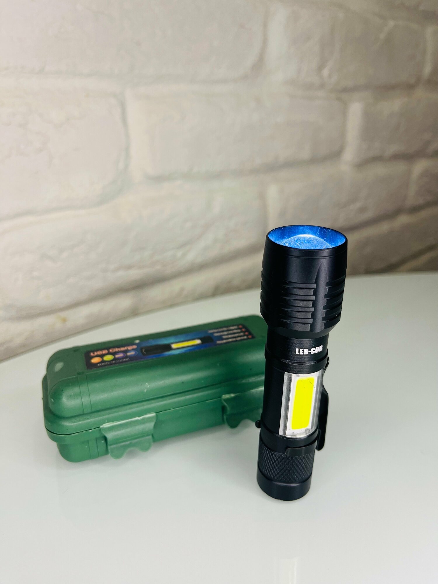 | Плюсы: | Светит ярко , три режима кабель usb ,чехол . |