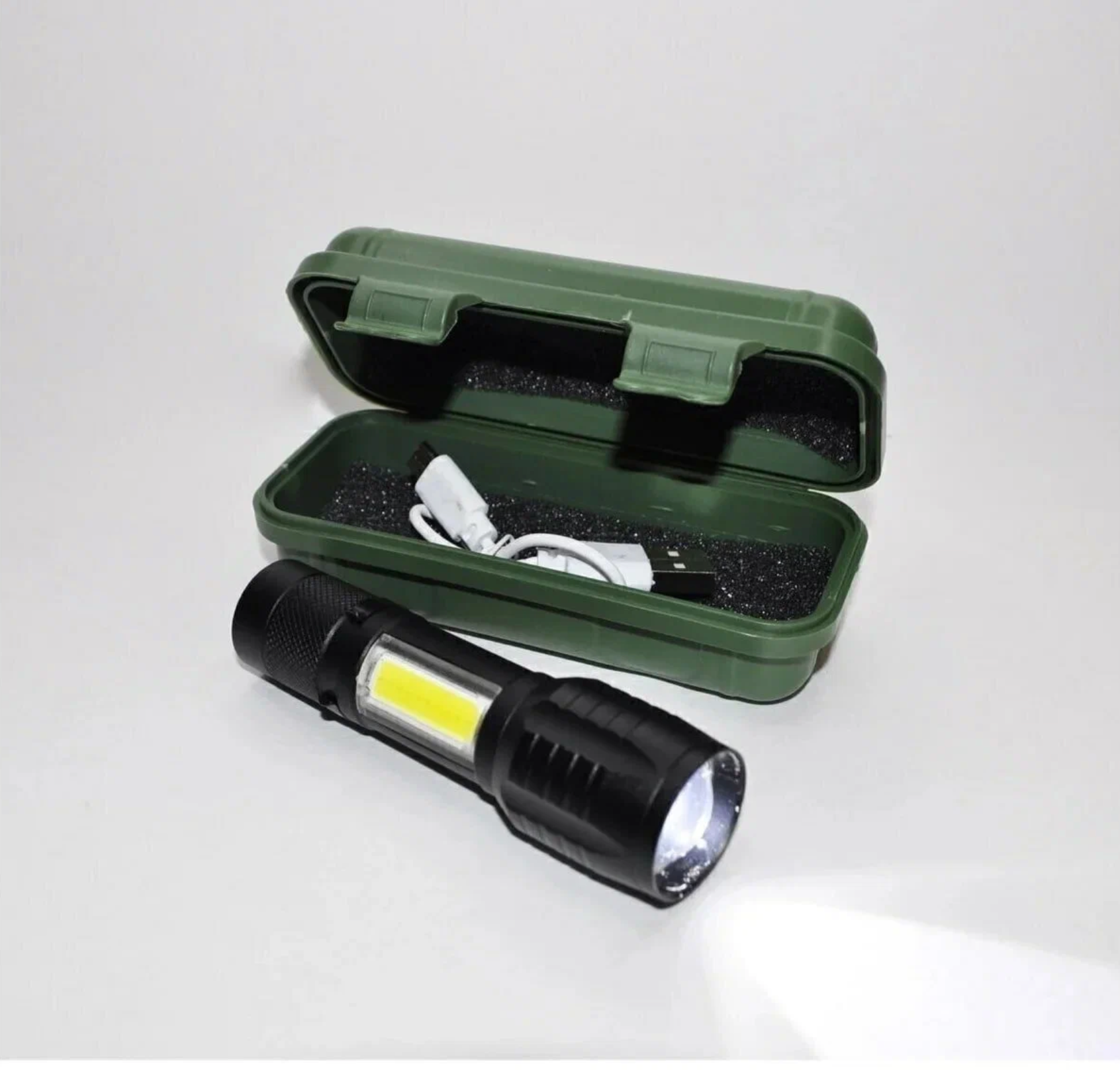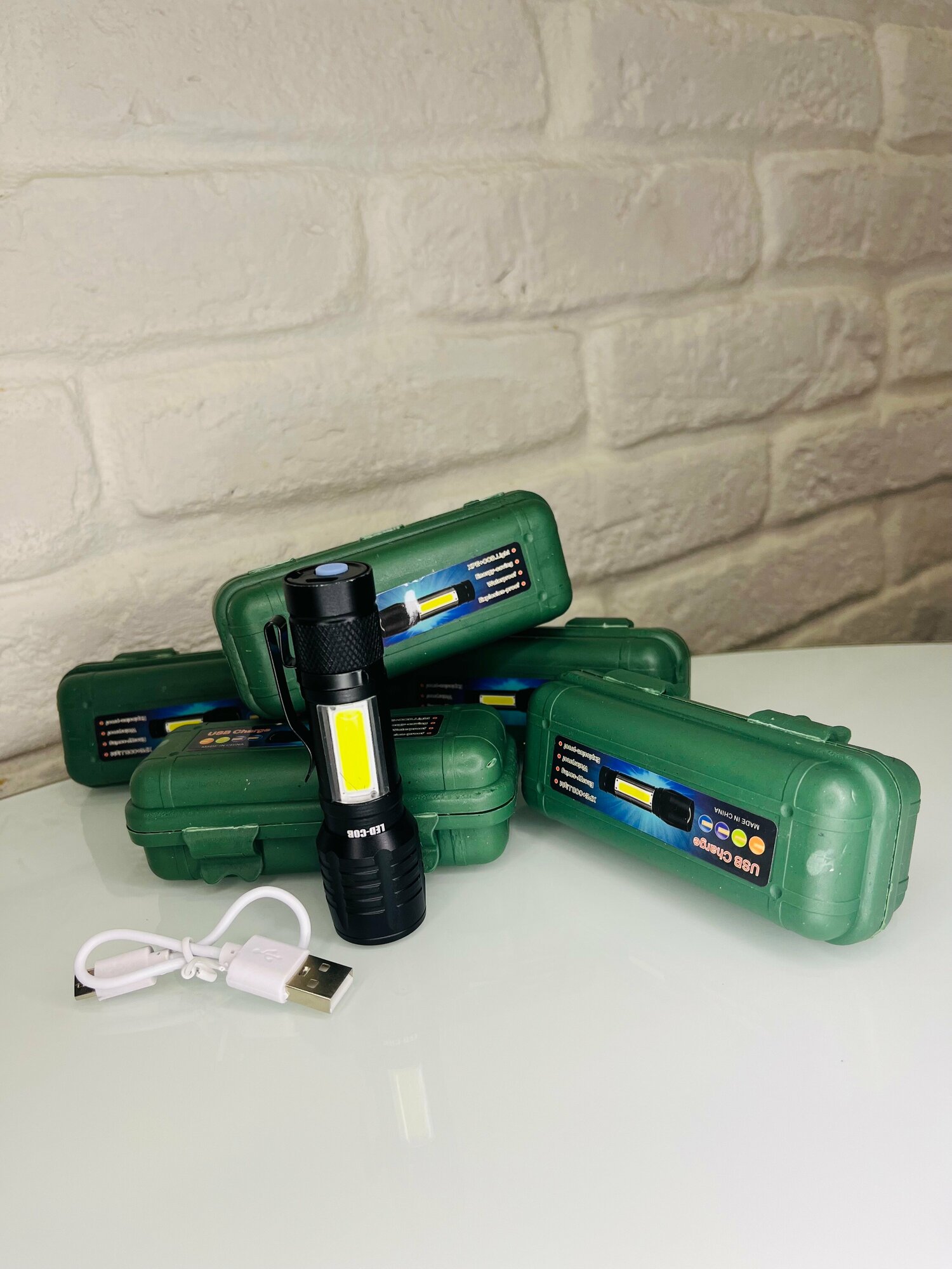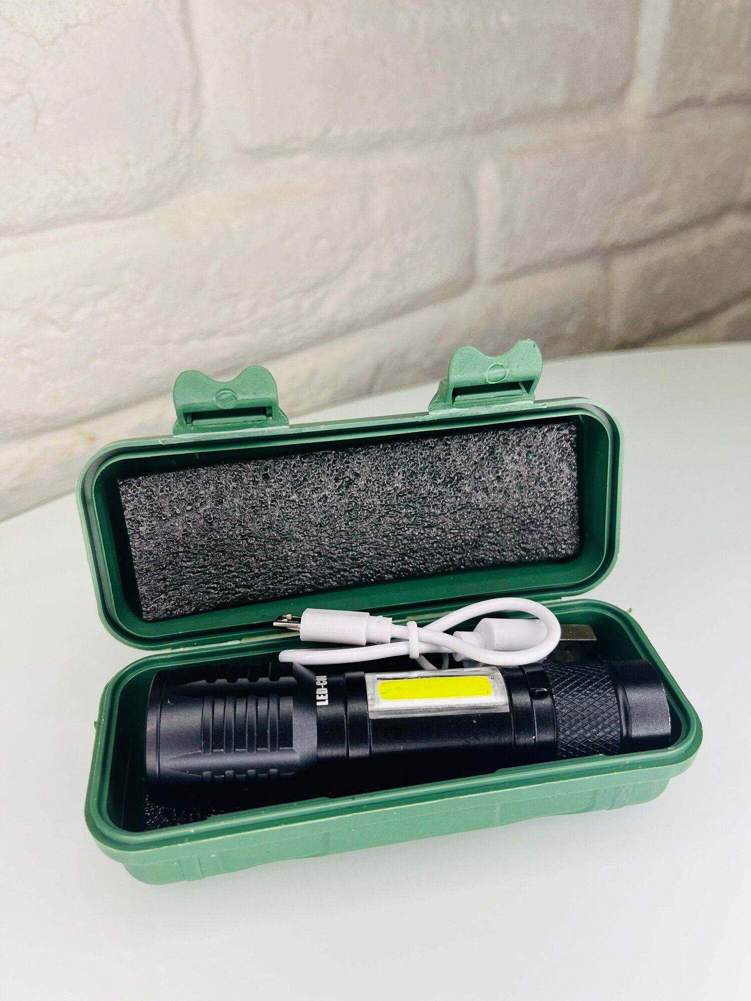 | Плюсы: | Светит ярко , три режима кабель usb ,чехол . |