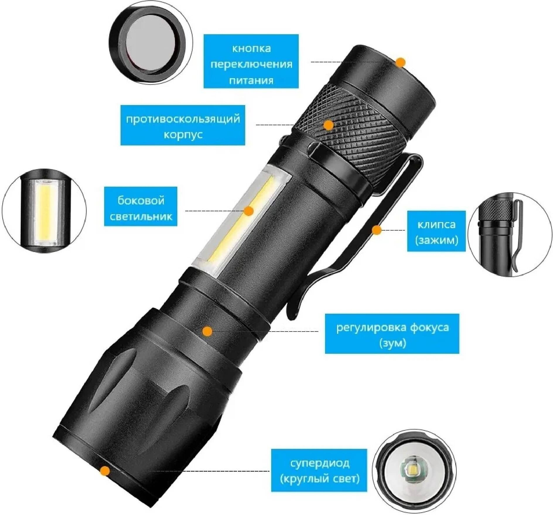 Ручной фонарь / Фонарик светодиодный / для охоты / для рыбалки / аккумуляторный / тактический / Фонарь кемпинговый интересное: