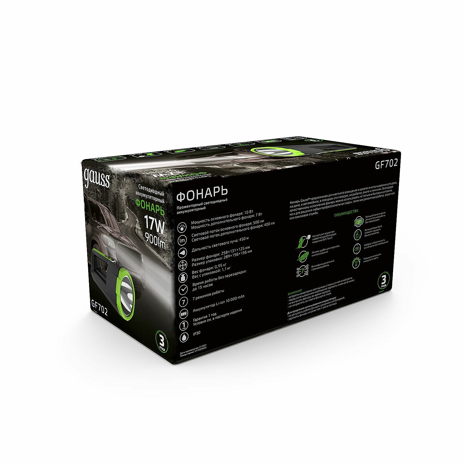 Gauss Фонарь прожекторный модель GFL702 17W 900lm Li-ion 10000mAh диммируемый LED 1/12