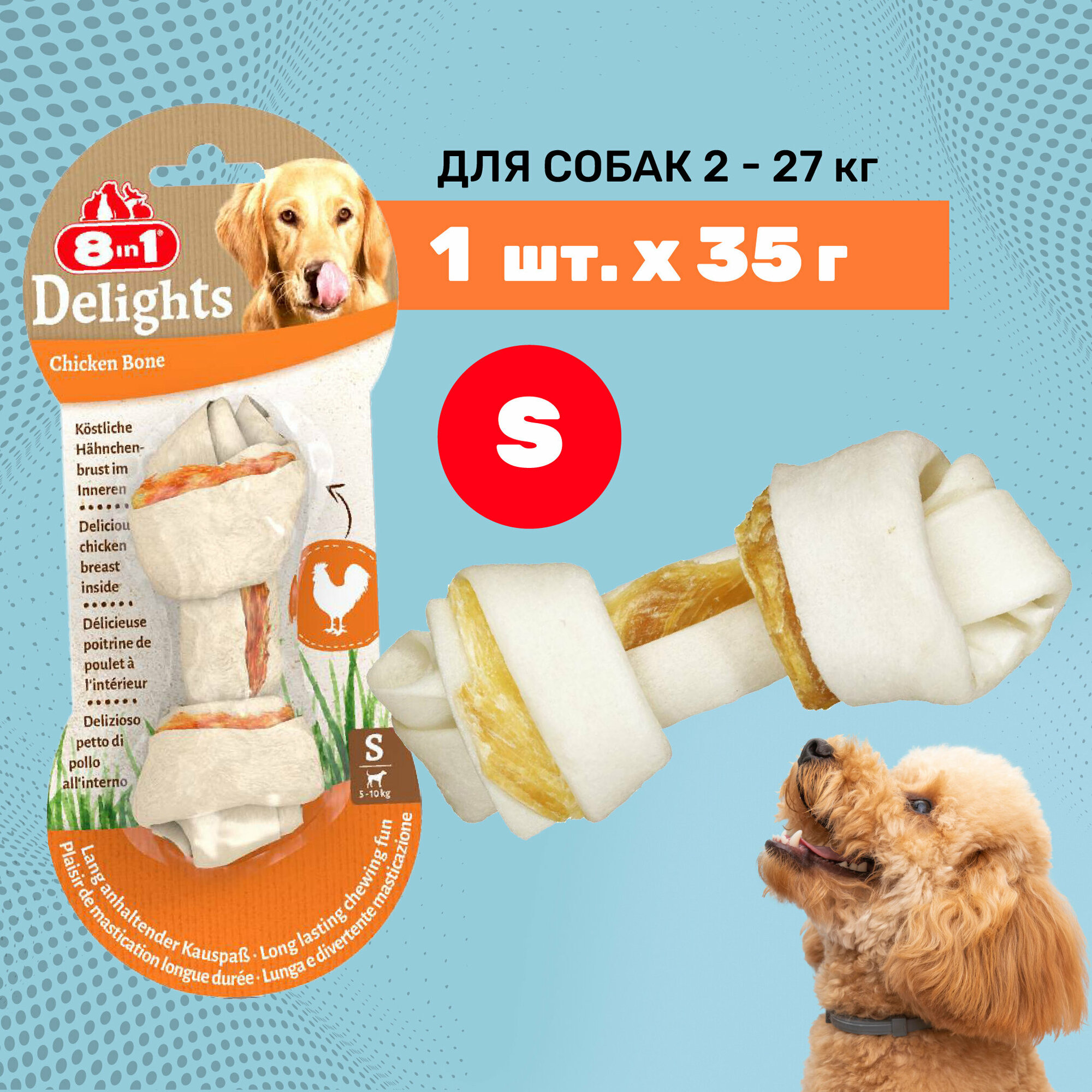 8in1 DELIGHTS S косточки с куриным мясом для мелких и средних собак 11 см 6 шт (пакет) .
