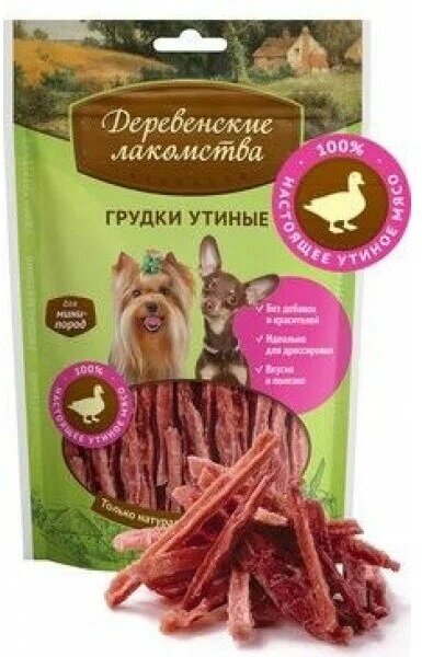 Лакомство для собак деревенские лакомства для мини-пород Грудки утиные 65г
