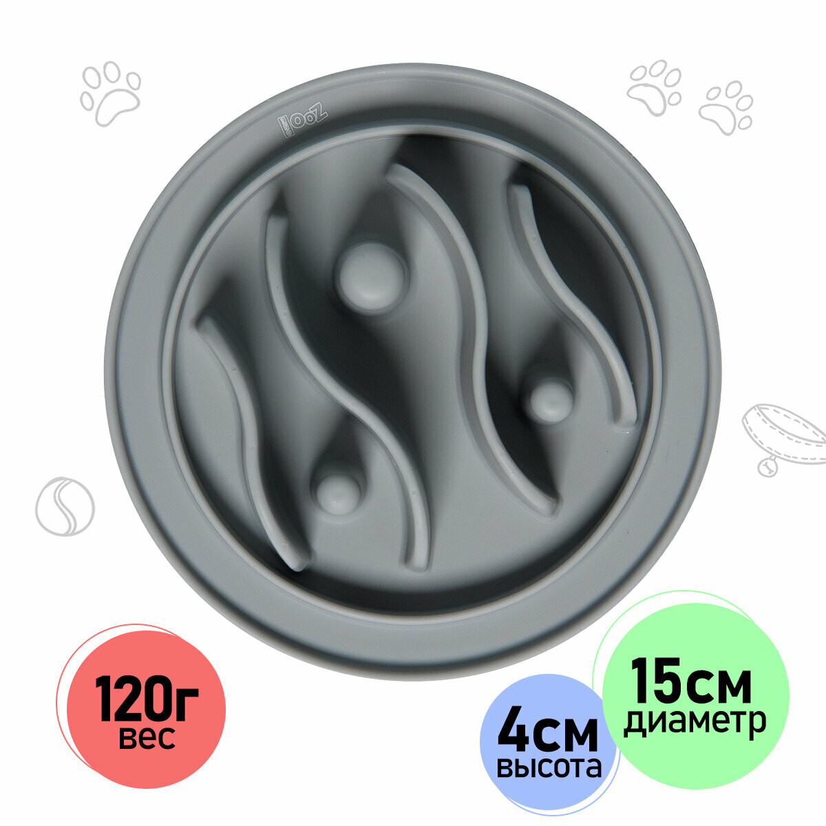 Миска ZooOne силиконовая рельефная (рыбки) игровая для медленного поедания корма серая, 15см