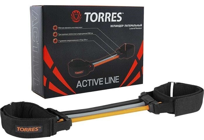 СохранитьУниверсальный латеральный эспандер Torres AL0045 из съемных шнуров разного диаметра, с регулировкой сопротивления от 9 до 34 кг, оранжево-черный интересное: