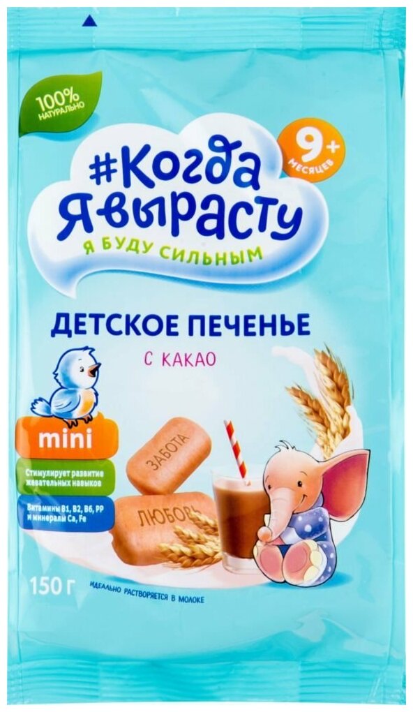 Печенье детское Когда Я вырасту С какао с витаминами и минералами, (с 9 месяцев), 150 г, 1шт