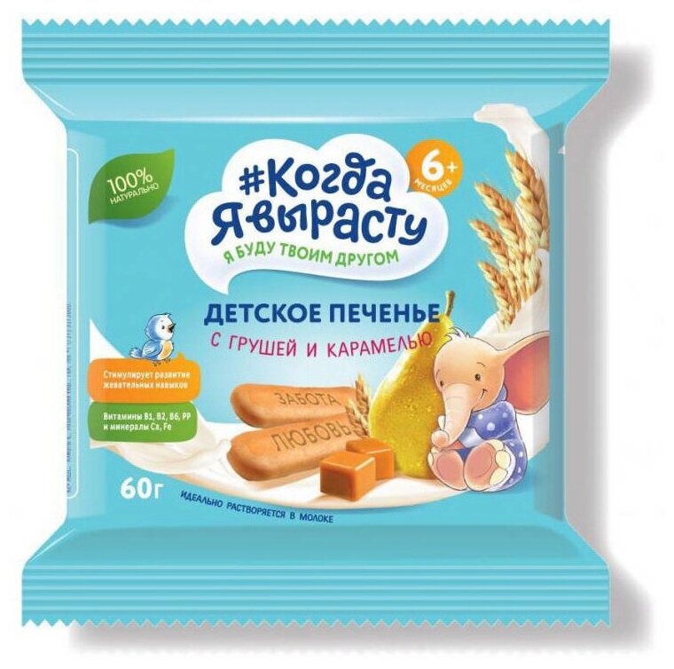 Купить Когда Я вырасту Печенье детское, С грушей и карамелью с витаминами и минералами,растворимое,60г