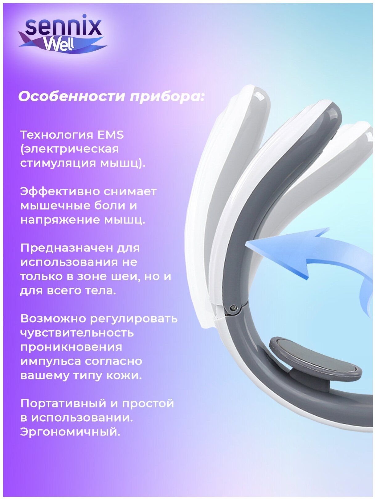 Напоминает массажёр для пресса, бьет немного током (импульсы) , но шея после отдыхает))