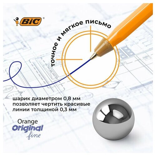 Купить Bic Ручка шариковая Orange Fine Тонкое письмо синяя 4 шт, 22 гр