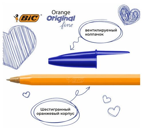 Ручки шариковые BIC "Orange Original Fine", набор 4 шт., синие, узел 0.8 мм, линия письма 0.3 мм, пакет, 8308521