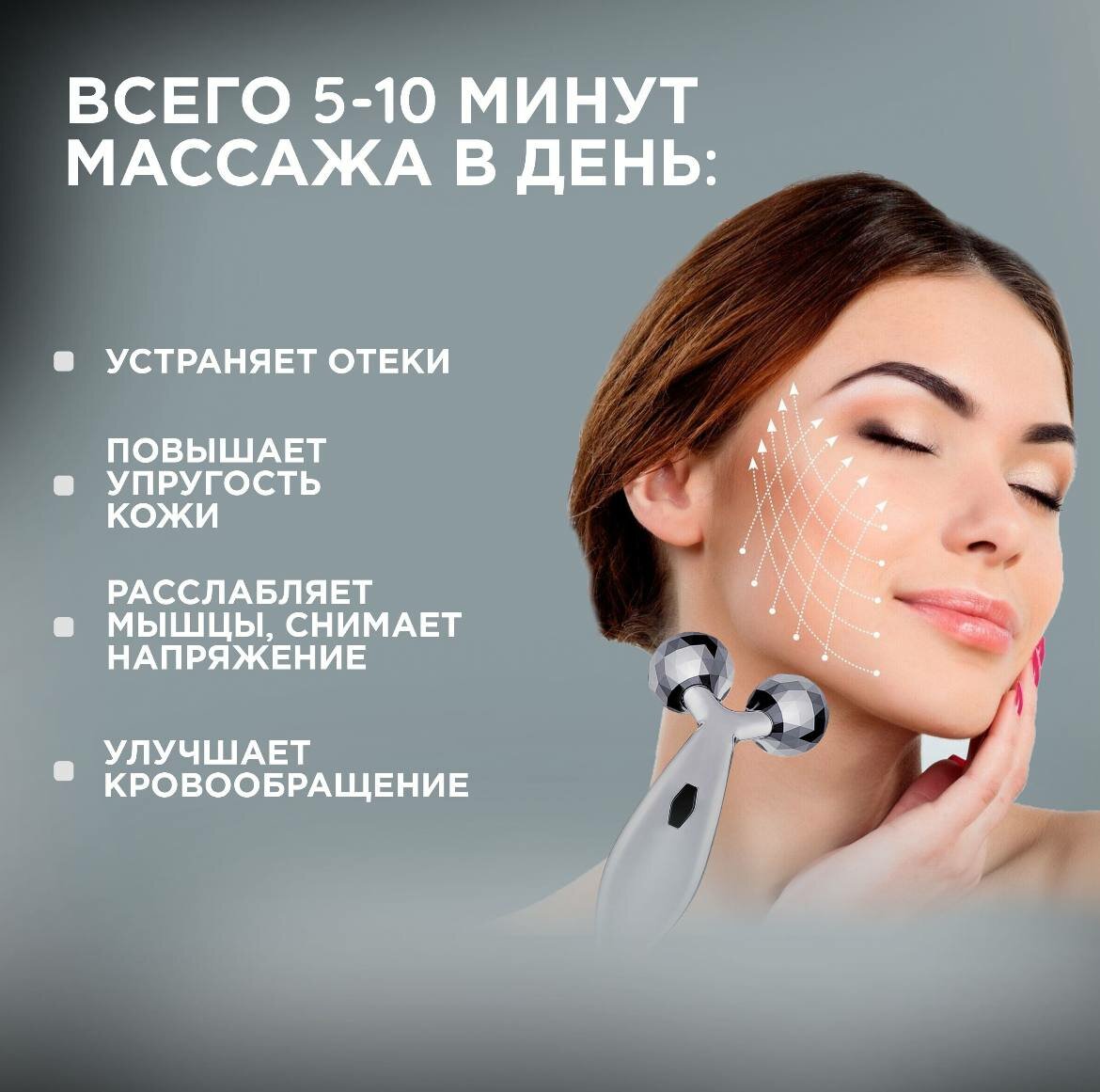 ЖМИ сюда / 3D Роликовый массажер для лица и тела / Лифтинг эффект / Металлический массажер ролик на 360 градусов интересное: