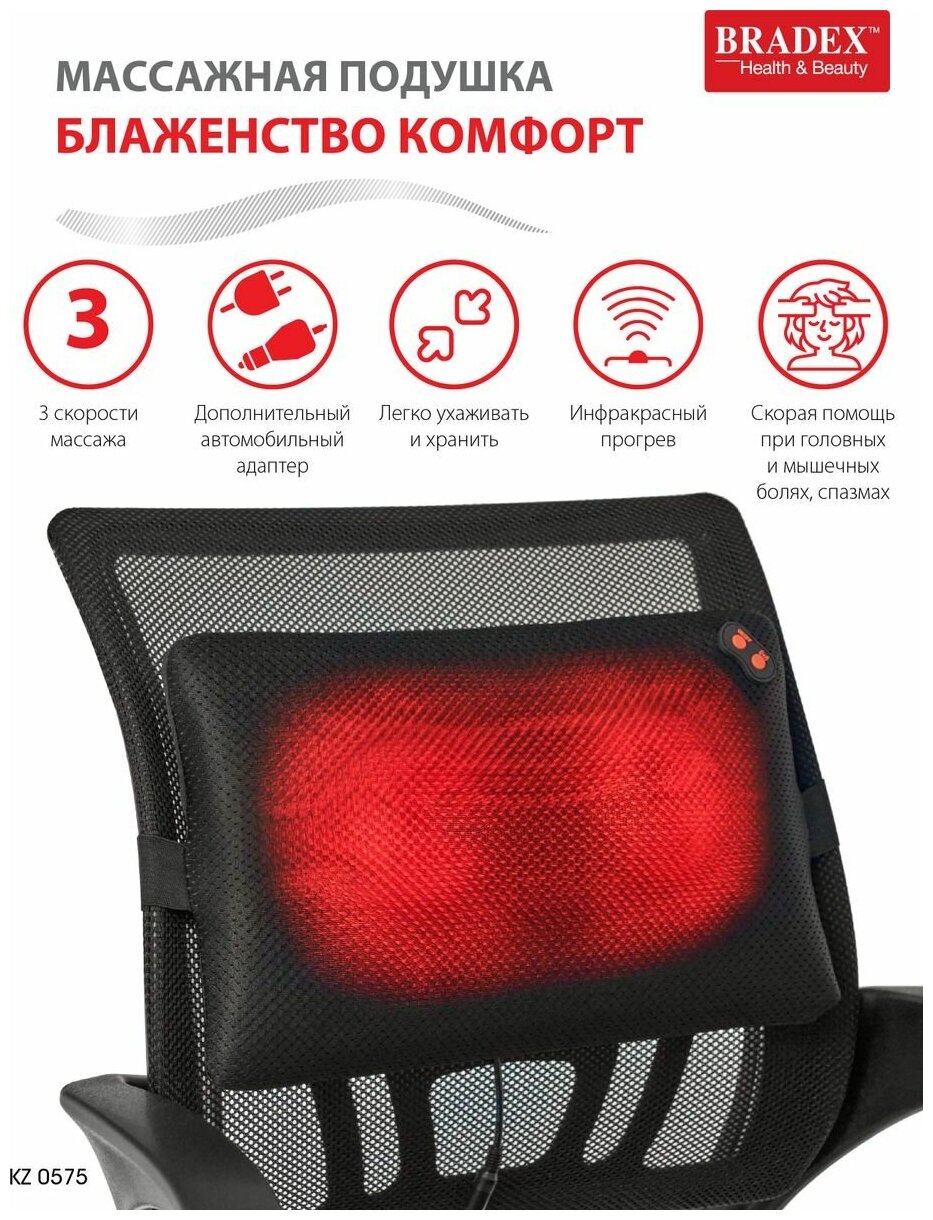 Массажная подушка «блаженство комфорт» BRADEX KZ 0575 39х25 см, черный интересное: