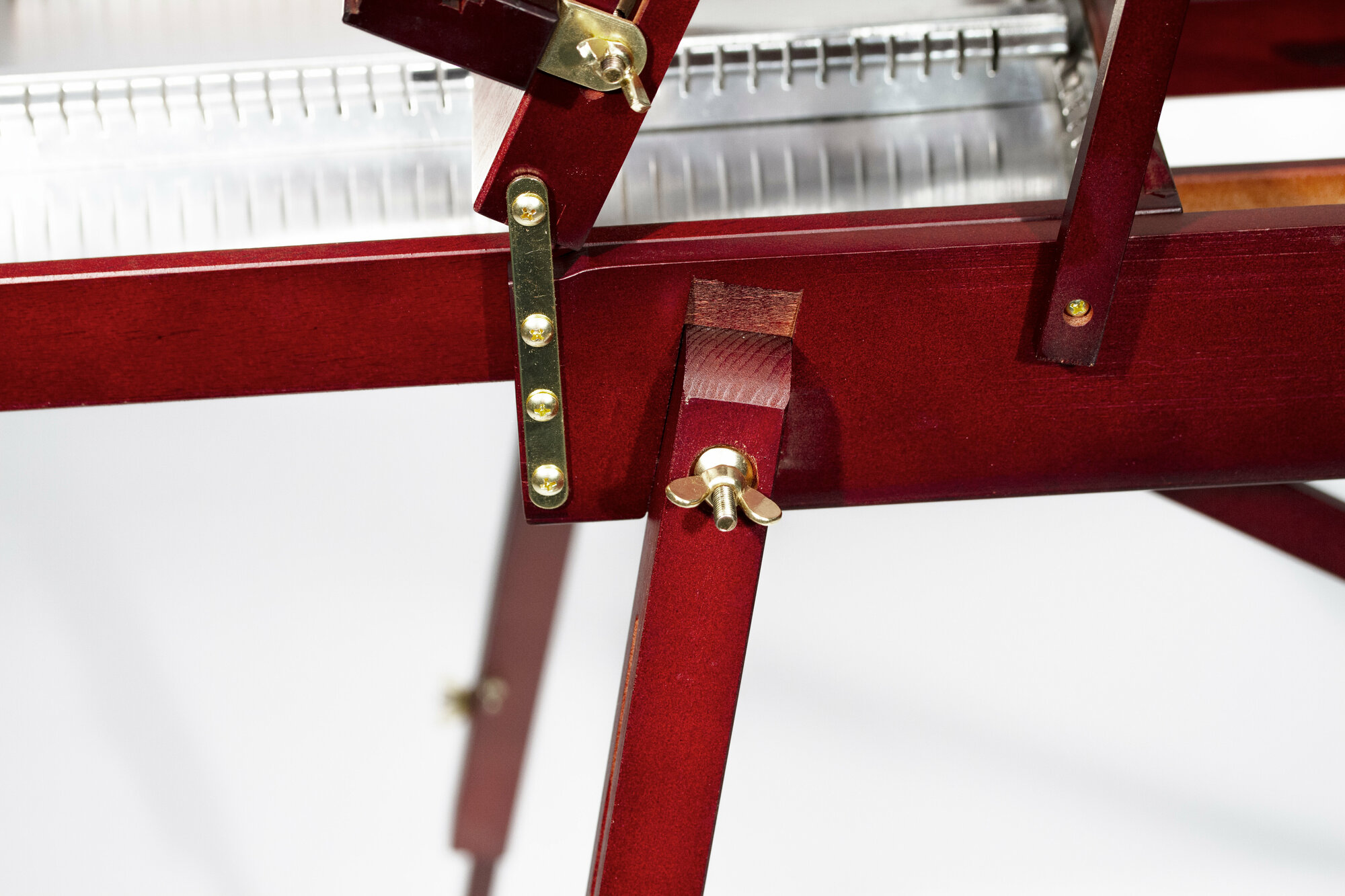 Есть трещина (см. на фото). На той же перекладине "не родной" жёлтый болт - он не подходит по длине и по форме шляпки (см. фото). Пока приспособили найденный дома белый болт - дальше подумаю, потому как он тоже болтается (хоть и чуть лучше жёлтого). Возврат делать не стану - сейчас возврат денег не позволит купить этюдник этой модели в другом месте - цены растут и товар уходит. Но осадочек остался |