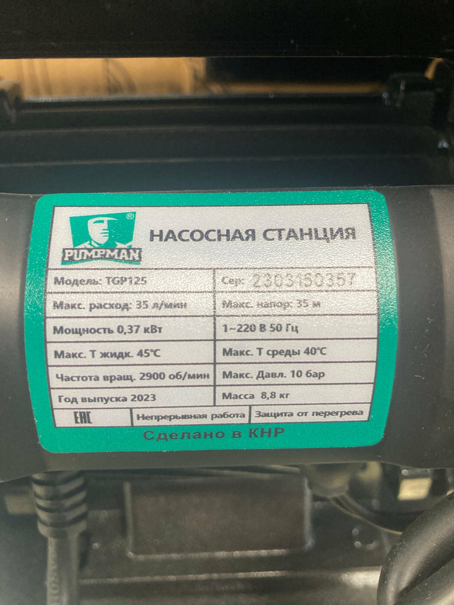 СохранитьНасосная станция Pumpman TGP125 интересное: