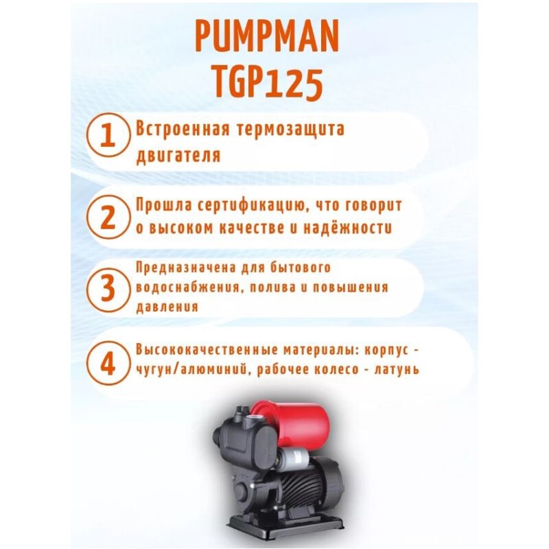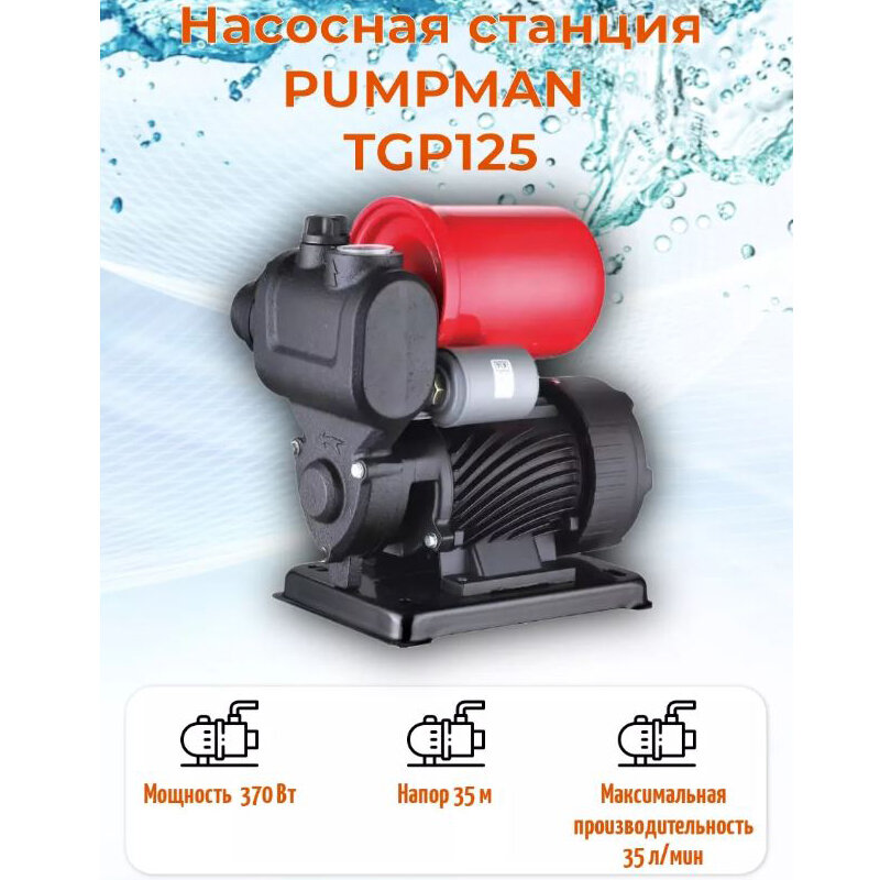 Станция насосная TGP125, чугун, 370Вт, напор 35м, производительность 35л/мин, обратный клапан, фильтр | код. 33 | Pumpman ( 1шт. )