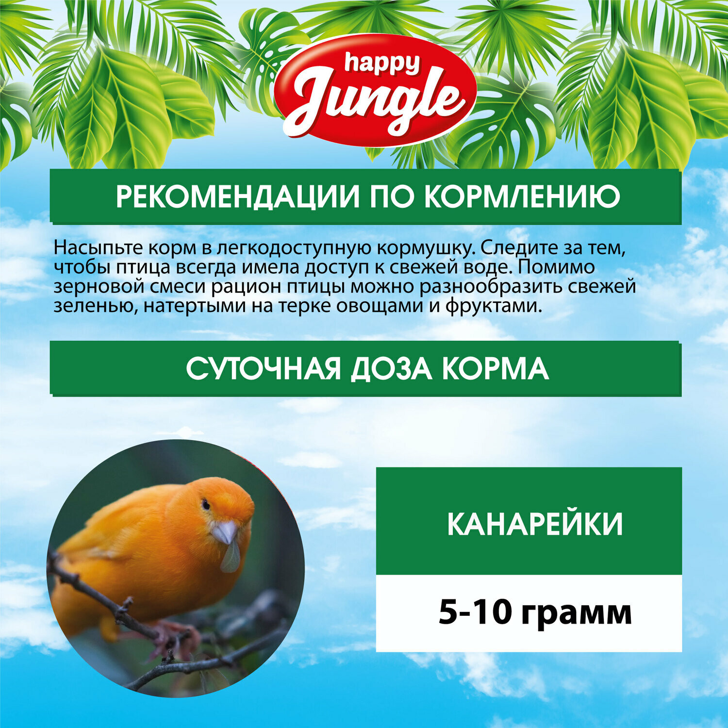 HAPPY JUNGLE Сбалансированный сухой корм для канареек, 500 гр