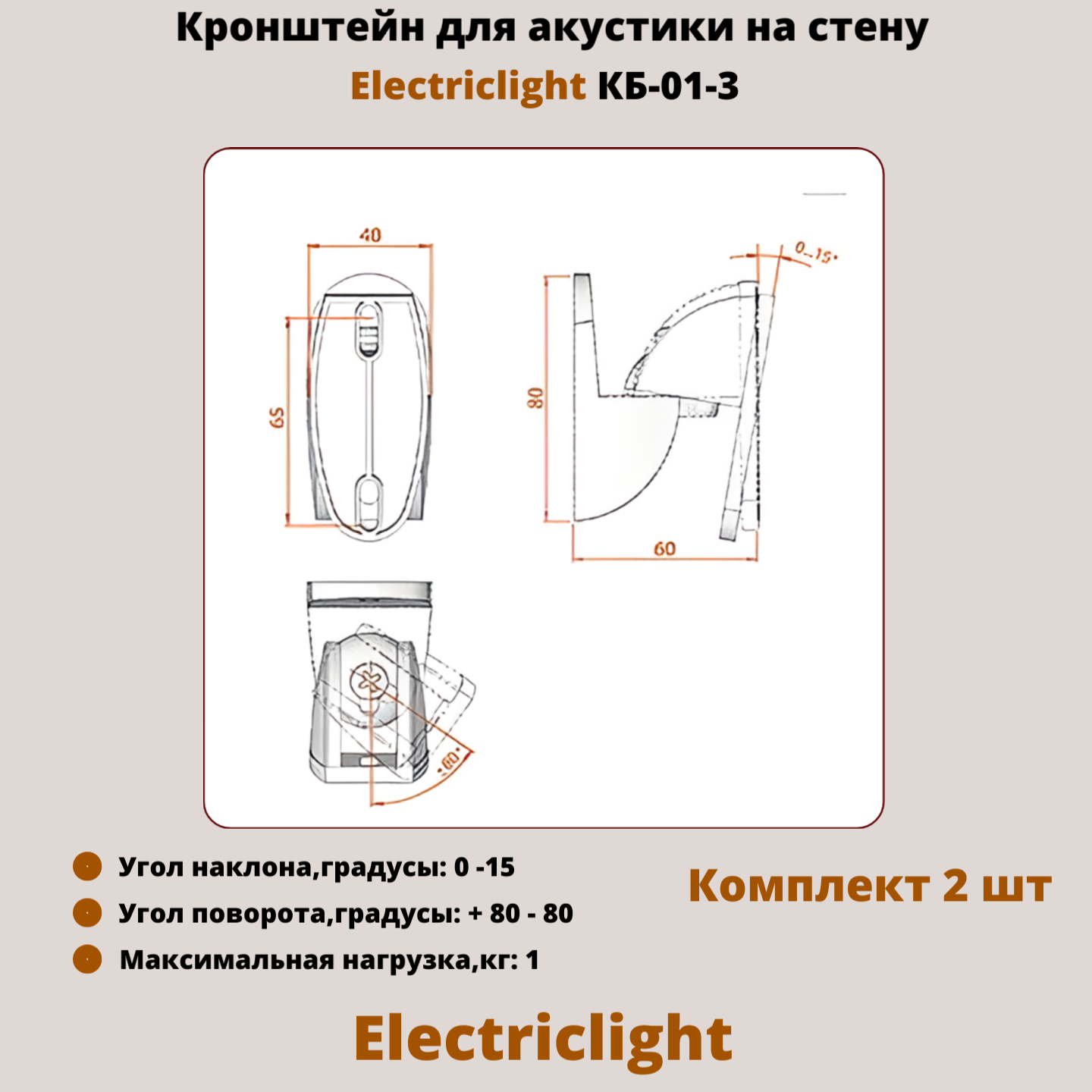 Кронштейн для акустических систем Electriclight КБ-01-3 до 1кг - 2 шт. в упаковке, черный
