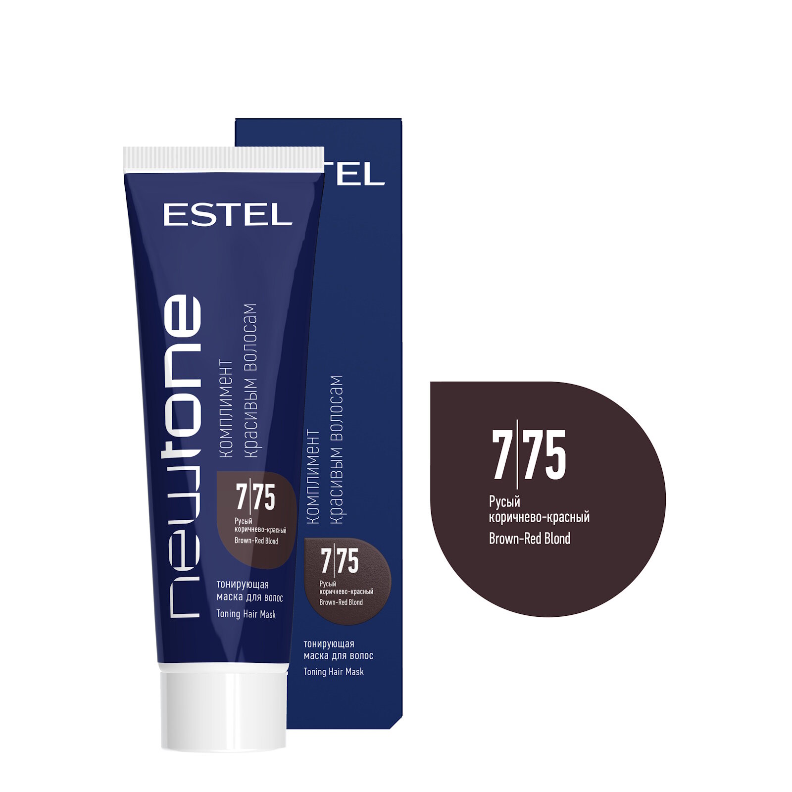 Estel Newtone: Тонирующая маска для волос Estel Newtone 7/75 Русый коричнево-красный NTB7/75, 60 мл