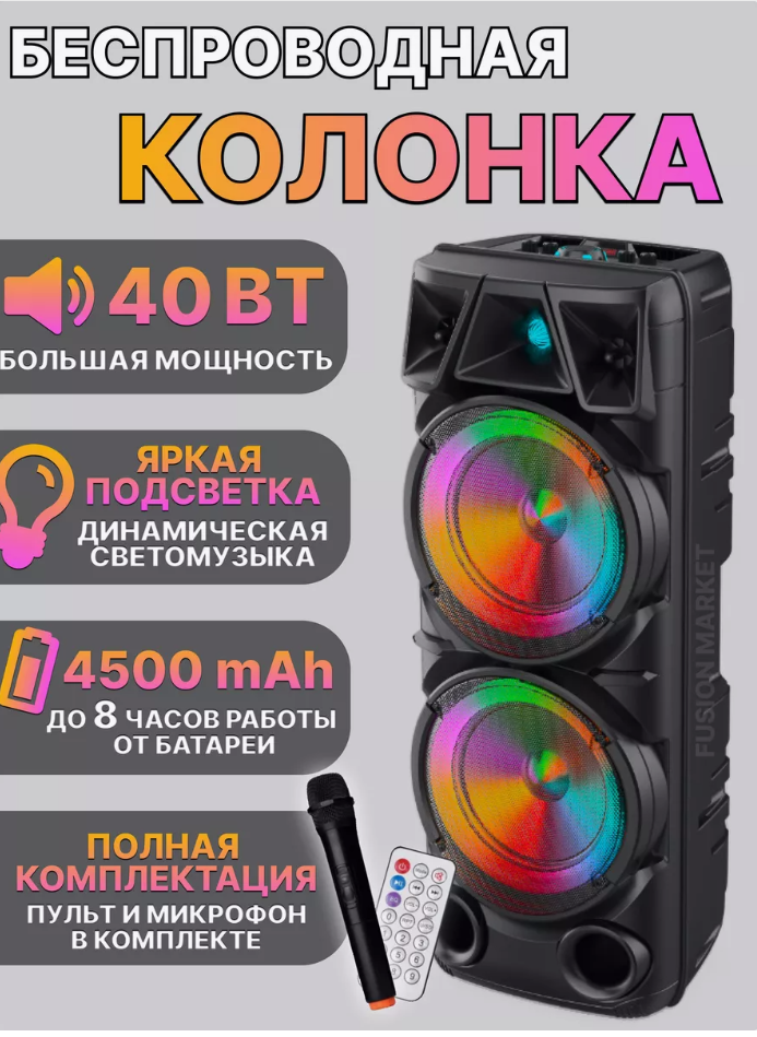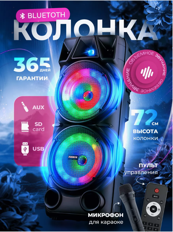 Портативная колонка BT Speaker ZQS-8210 с микрофоном и пультом интересное:
