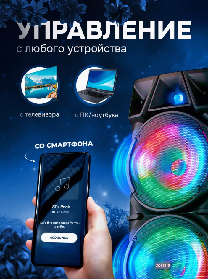Купить Портативная колонка BT Speaker ZQS-8210 с микрофоном и пультом