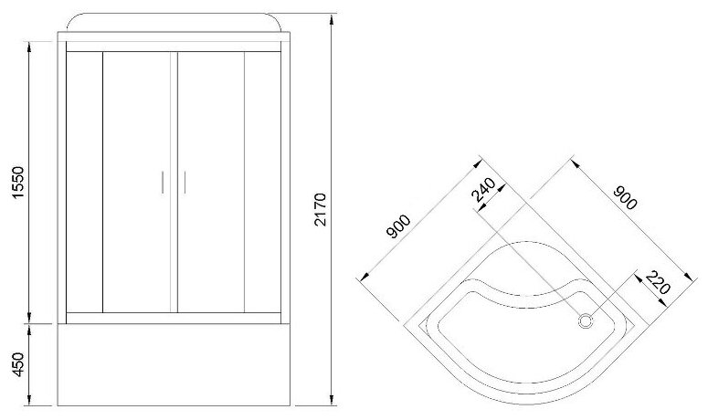 | Форма поддона | четверть круга |