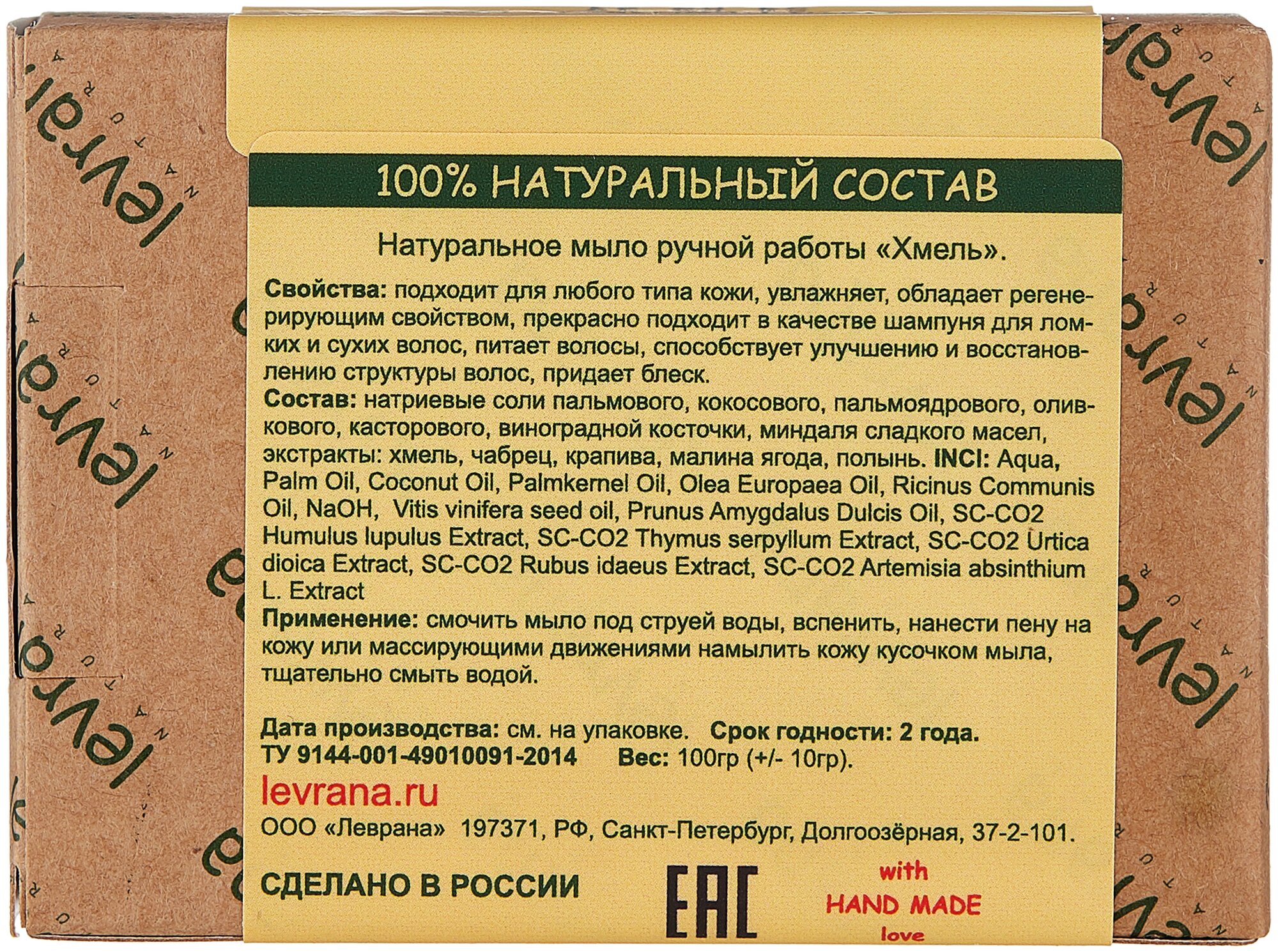 Levrana Натуральное мыло ручной работы "Хмель" 100 г интересное: