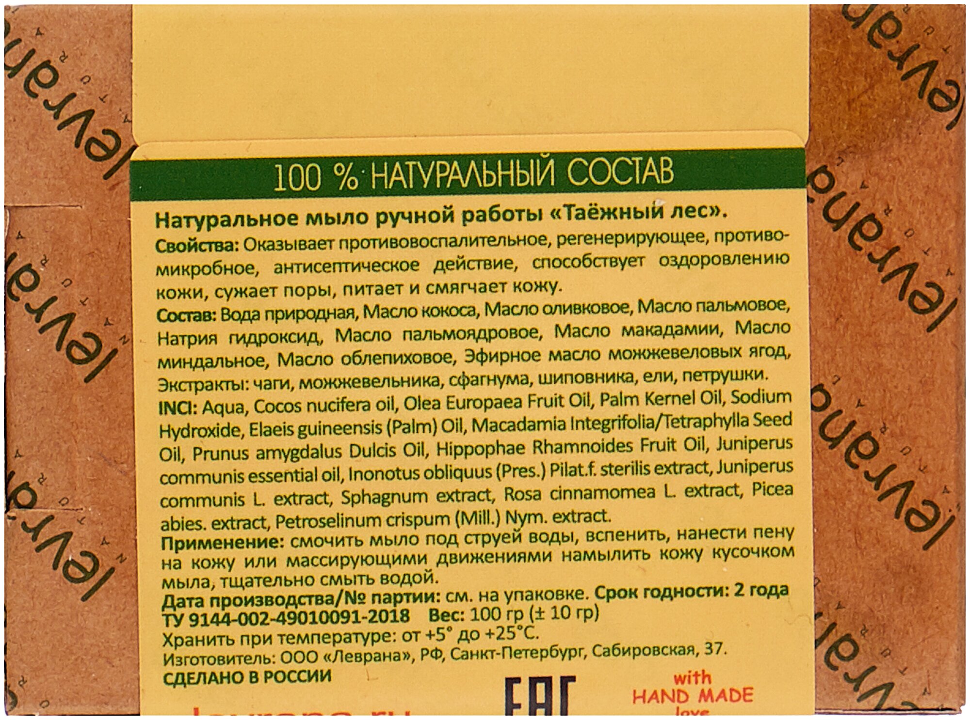 Levrana Мыло ручной работы натуральное Таёжный лес 100 г интересное:
