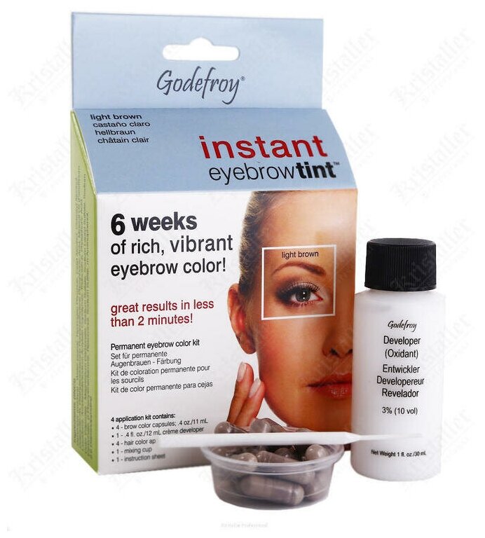 Godefroy Краска-хна для бровей синтетическая в капсулах Instant Eyebrow Tint 15 шт., light brown, 3 мл интересное: