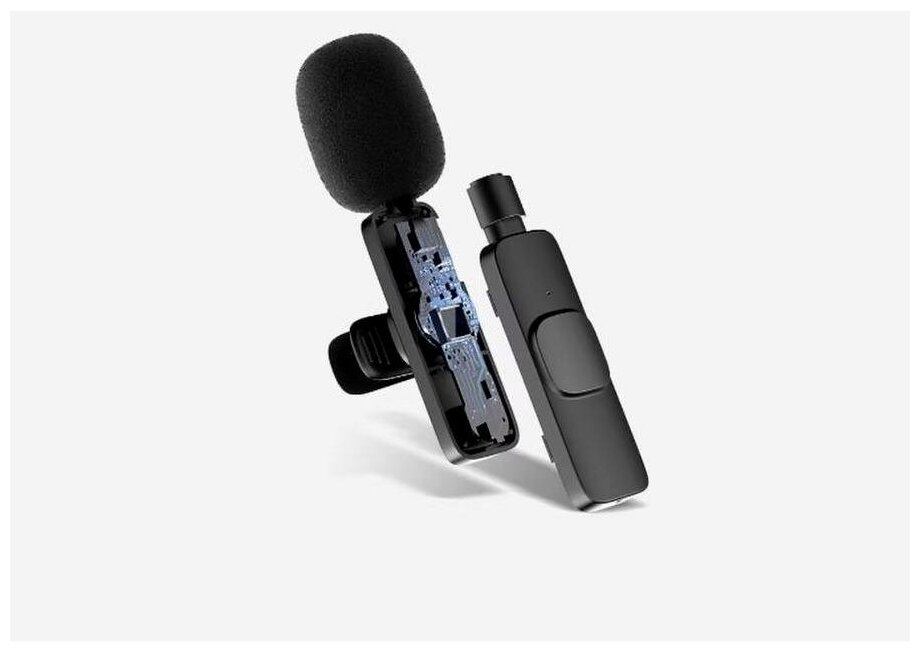 Микрофон петличный беспроводной, с шумоподавлением, петличка, для мобильного телефона, разъем Lightning, для Iphone, черный, 2шт