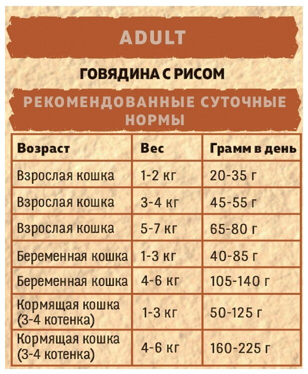 | Возраст животного | взрослые (1-6 лет) |