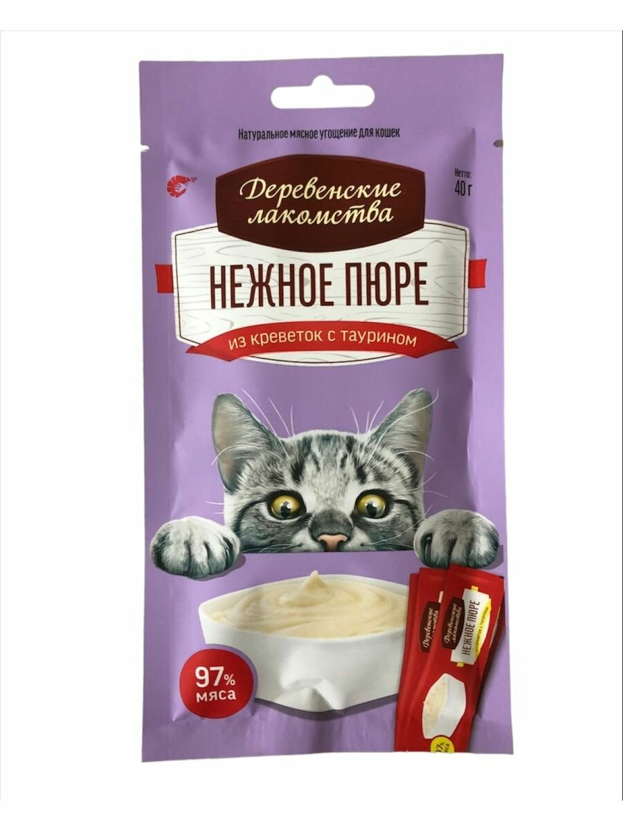 Деревенские лакомства десерт для кошек Нежное пюре из креветки 10гр*4шт