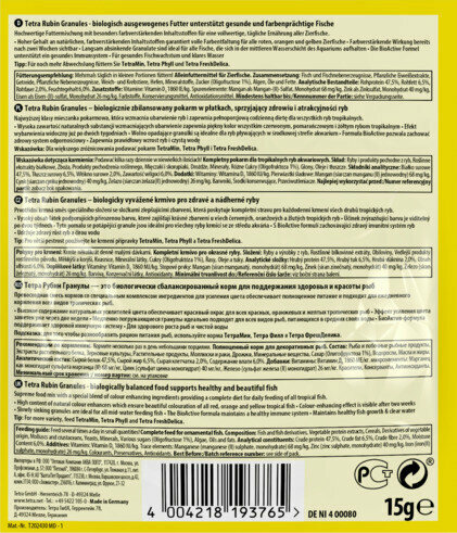 Tetra (корма) Корм усиливающий окраску рыб, гранулы Rubin Granules 193765 | Rubin Granules, 0,015 кг, 36407