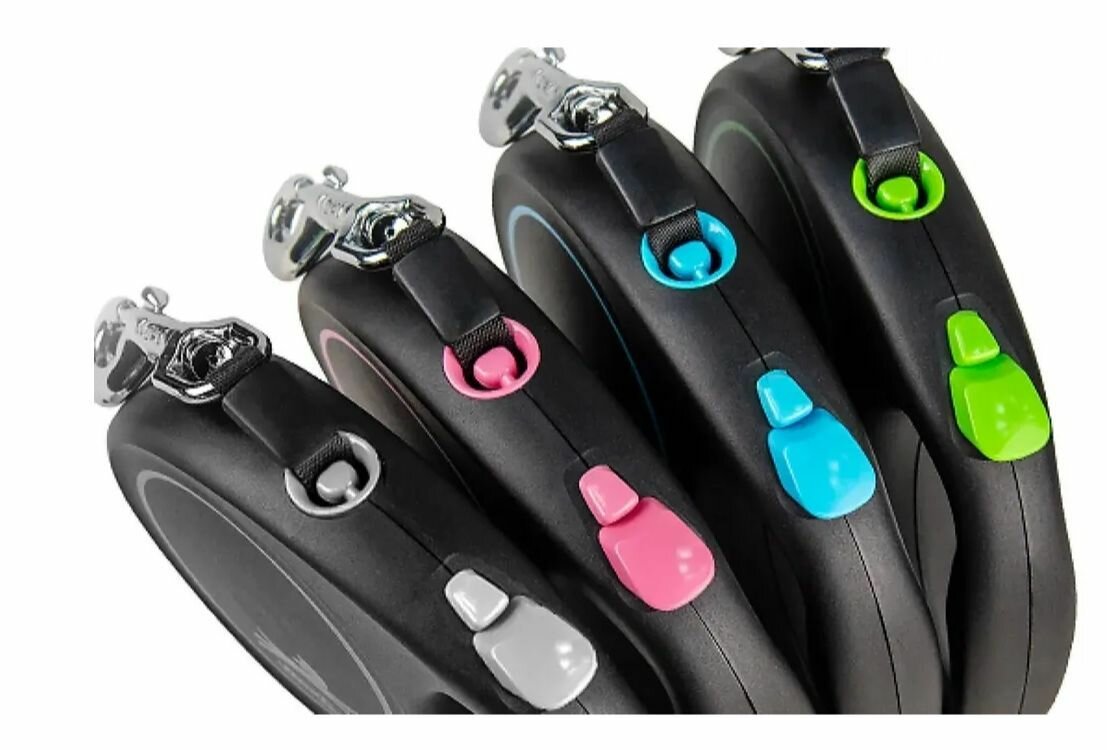| Плюсы: | Удобно держать в руке, есть кнопка -фиксатор, плавное скольжение ленты поводка. Приятный внешний вид. |