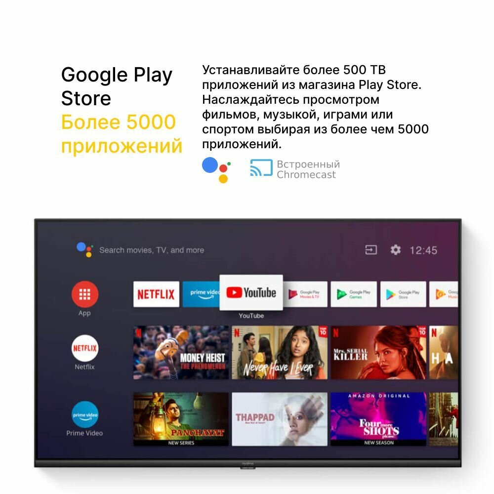 Телевизор Realme TV 43" RMV2004 черный (43", 4K, 60Гц, SmartTV, Android, WiFi)