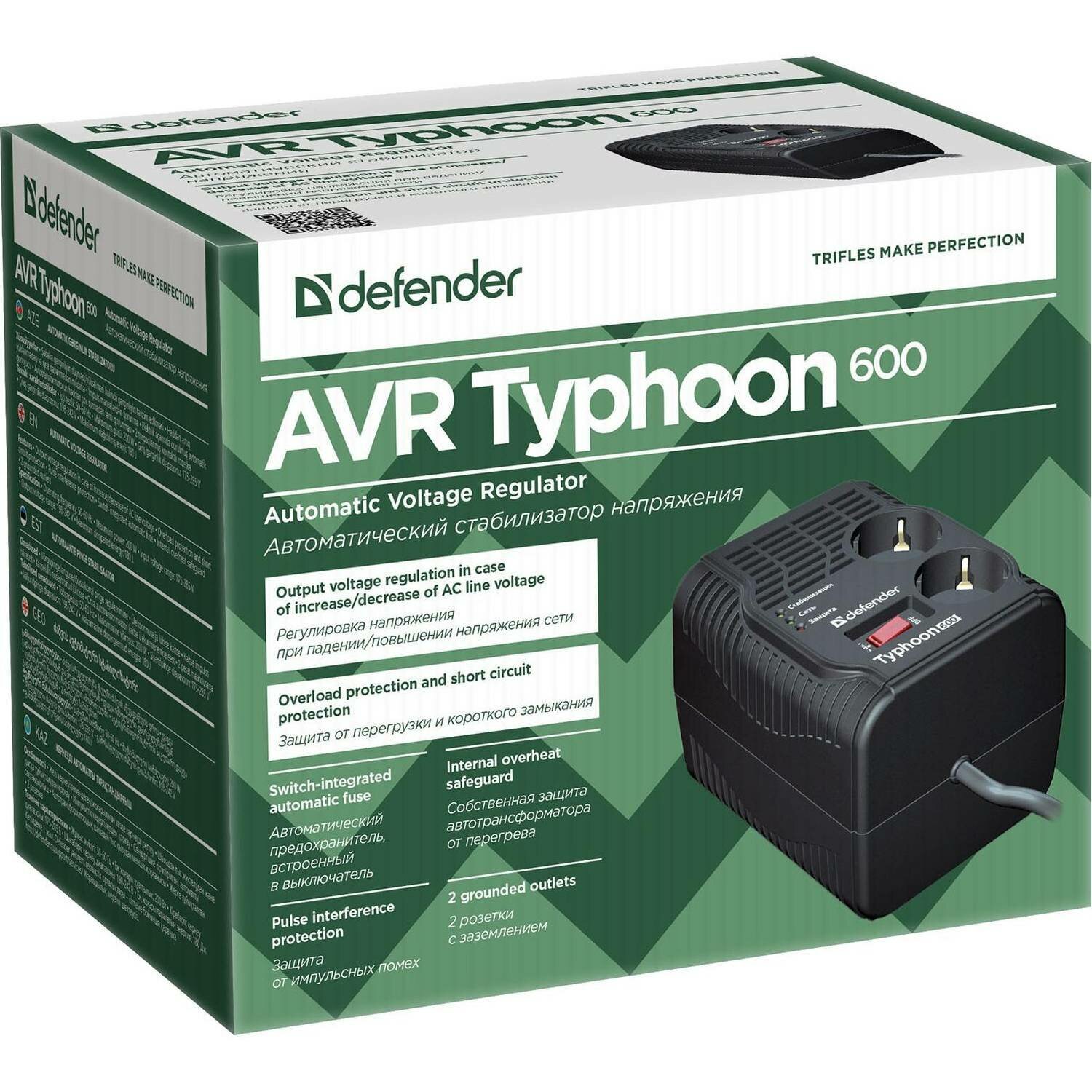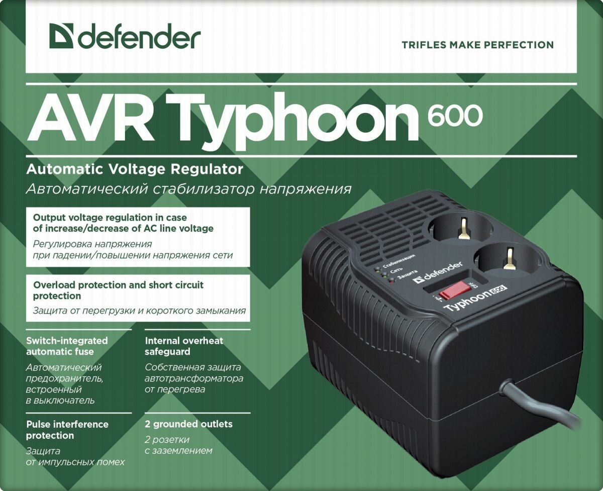 Стабилизатор напряжения Defender AVR Typhoon 600 0.6 м 2 розетки 99032