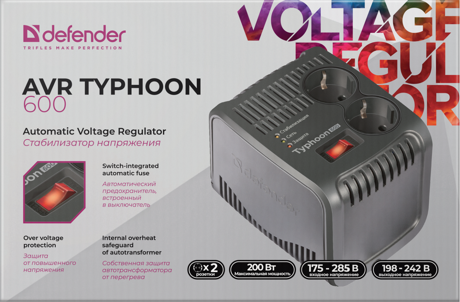 Стабилизатор напряжения Defender AVR Typhoon 600 200 Вт, 2 розетки