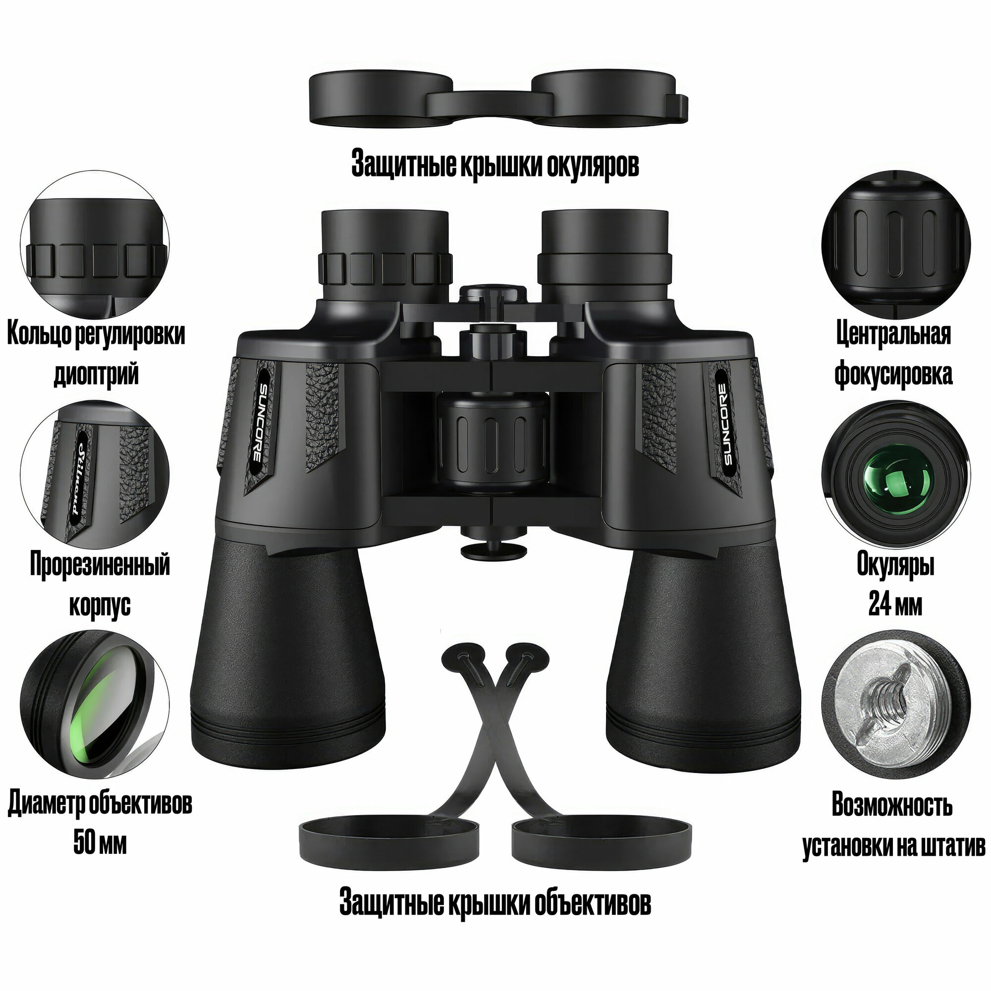 Купить Бинокль OpticView 20X50 мощный профессиональный оптический полевой для охоты, рыбалки, туризма и наблюдений