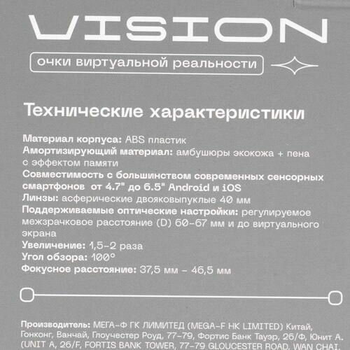 Очки виртуальной реальности TFN VR VISON черный интересное: