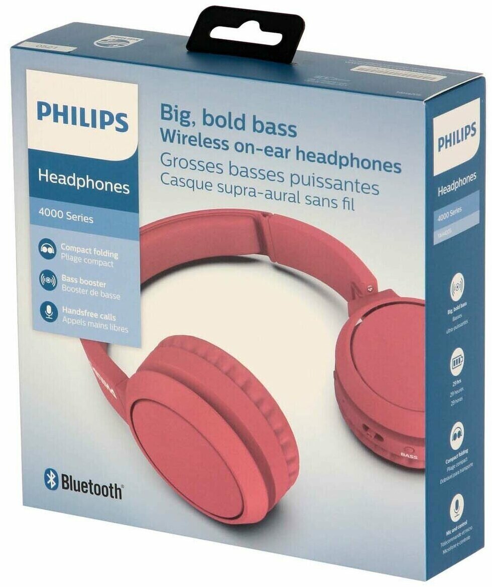 Гарнитура Philips TAH4205RD/00, Bluetooth, накладные, красный