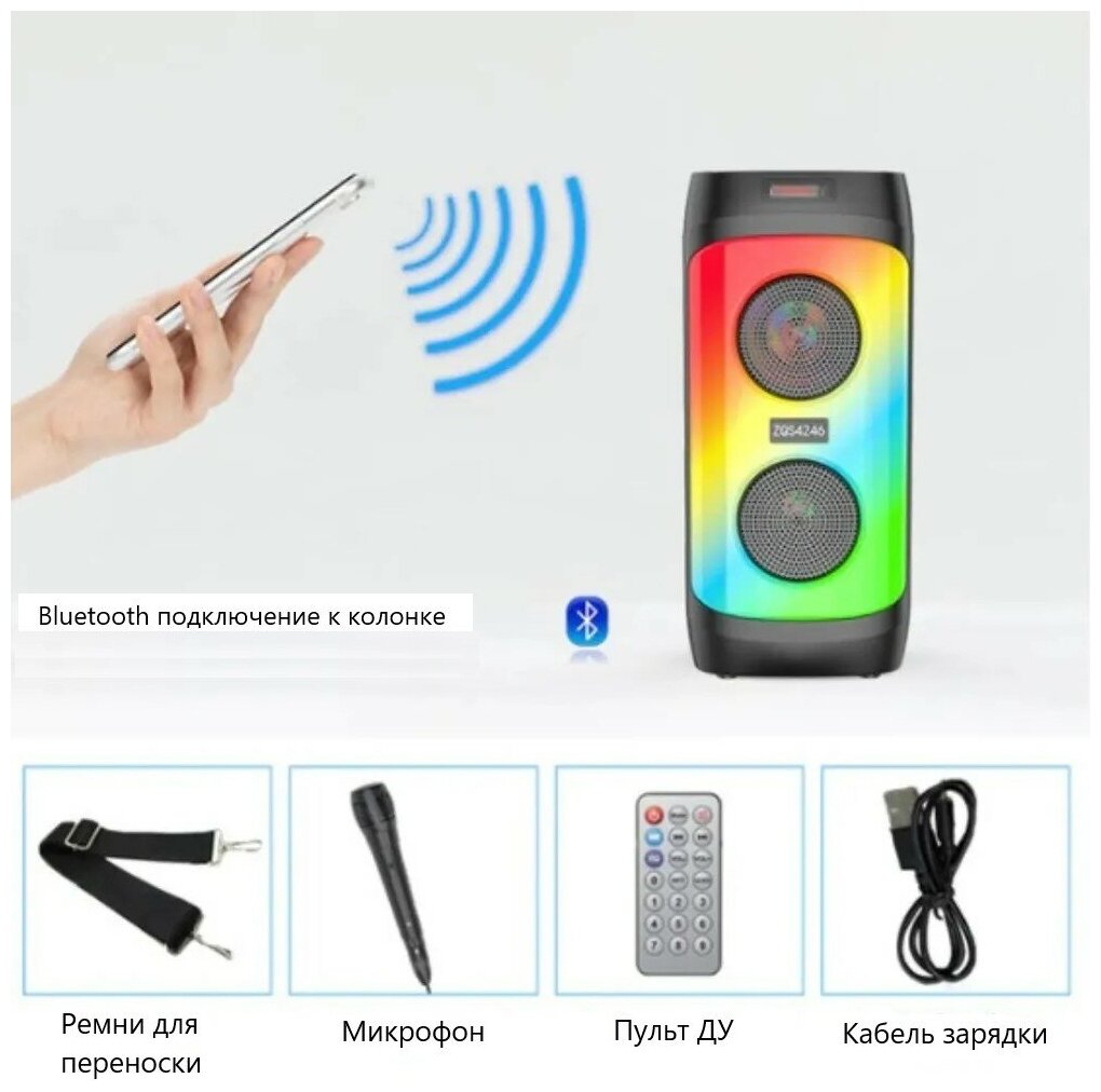 Большая колонка, большая колонка светящаяся, большая музыкальная колонка, колонка напольная портативная с микрфоном, USB, AUX, bluetooth, пульт ДУ интересное: