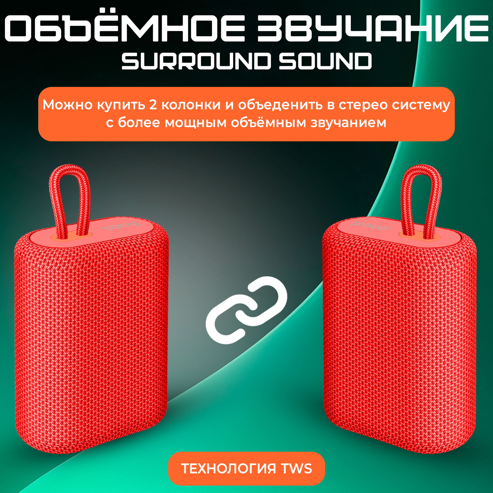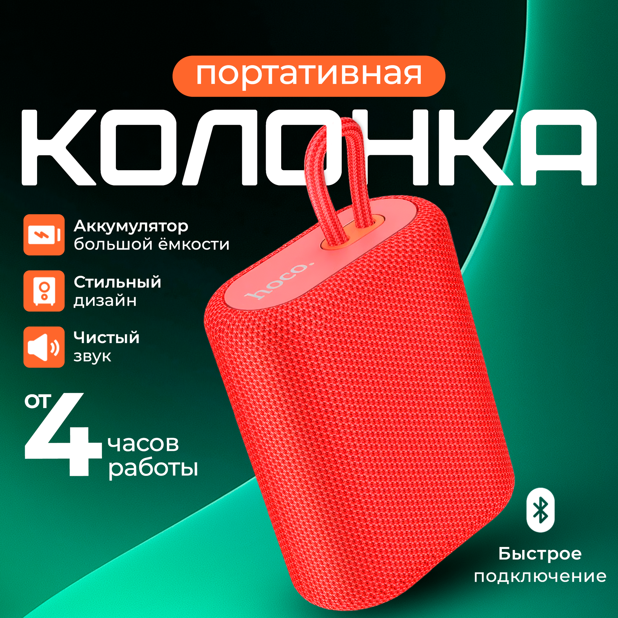 Портативная колонка hoco 6931474755988 BS47, красный, ткань