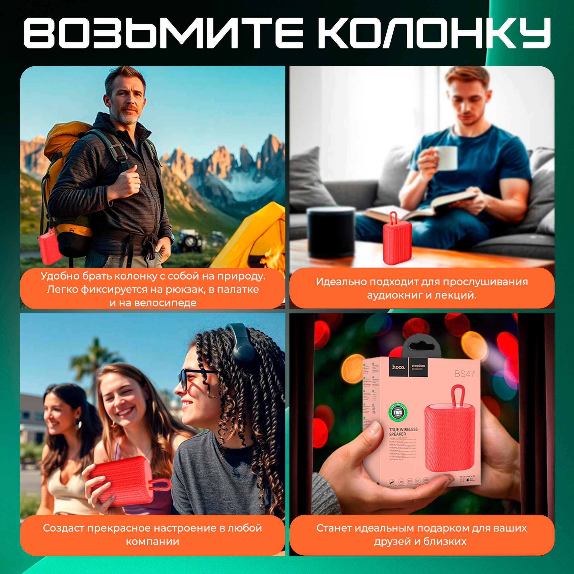 Hoco портативная колонка (BS47), зеленый