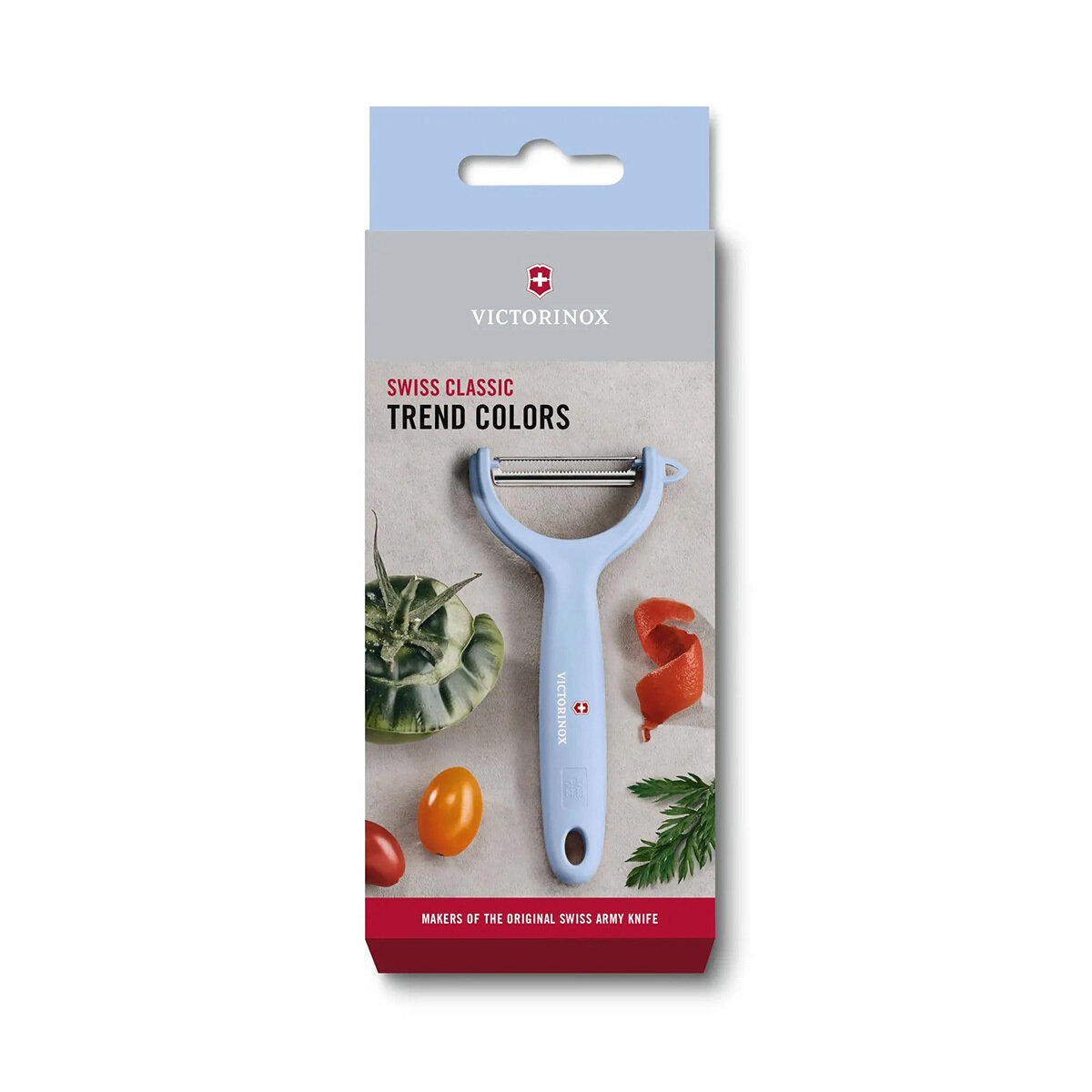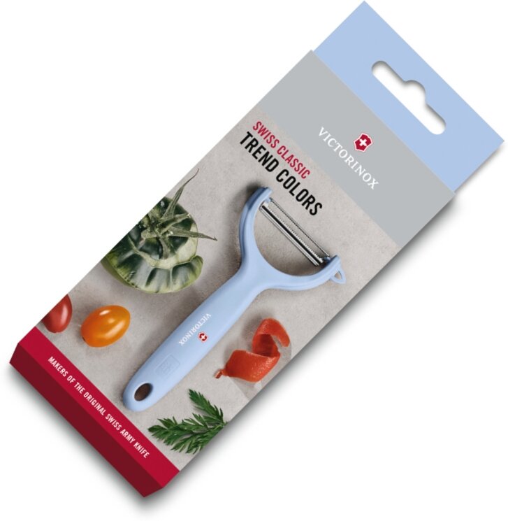 Овощечистка нож VICTORINOX Swiss Classic Trend Colors для киви и томатов, двустороннее зубчатое лезвие из нержавеющей стали, голубая